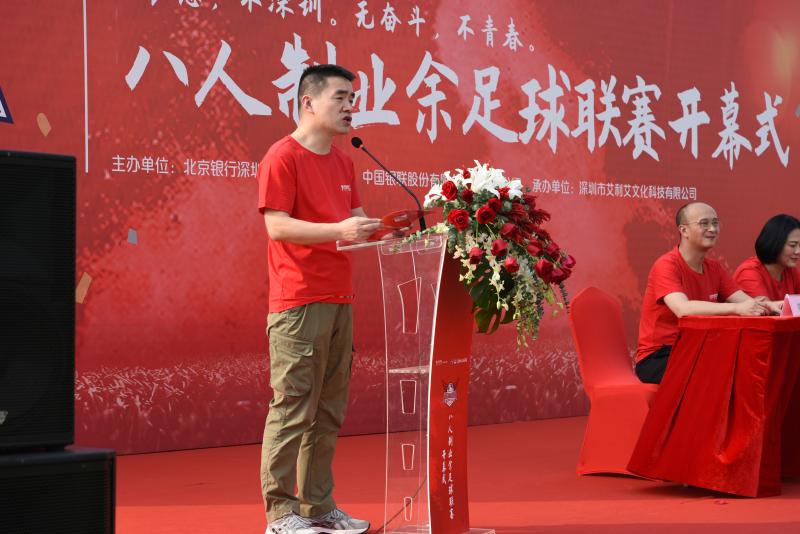 北京銀行深圳分行副行長楊運廣為開幕式致辭,他表示,作為一家中外資本融合的新型股份制銀行,北京銀行深圳分行在成立的11年里,堅持為廣大客戶提供涵蓋公司、零售、私人銀行、國際、同業、投行等全面綜合的金融服務。同時還努力為大家搭建交流平臺,創造契機、加強溝通。此次“京彩生活杯”八人制業務足球聯賽便是北京銀行深圳分行踐行這一客戶服務理念的有力注解。