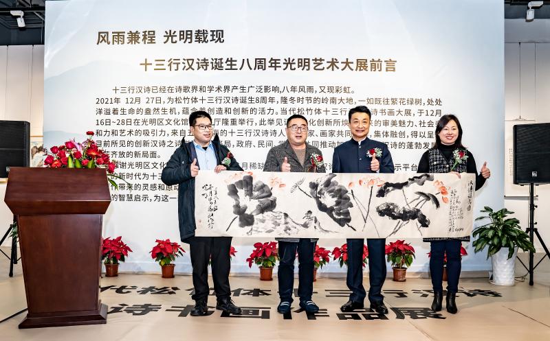 讀特客戶端·深圳新聞網(wǎng)2021年12月29日訊(記者 田志強(qiáng))近日,國家社科基金項目“當(dāng)代漢詩創(chuàng)新詩體研究”階段性成果展——十三行漢詩書畫作品展,于光明區(qū)文化館成功舉辦。本次展覽集中展示本項目重要研究成果、全國各地新漢詩詩人的原創(chuàng)十三行漢詩之書畫作品等。十三行漢詩創(chuàng)立八年以來,得到了海內(nèi)外詩人的廣泛關(guān)注,在國家社科基金研究團(tuán)隊精研闡釋的基礎(chǔ)上,得到了學(xué)術(shù)界的肯定。