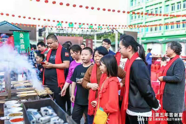 “太熱鬧了!離開湖南老家來到深圳后,從來沒有體會到這么熱鬧喜慶的場面。這么多人一起過年、吃宴席,也只有在湖南老家過年的時候才能感受到。農耕記傳承湖南過年習俗和文化,是對傳統文化的繼承和發揚,值得點贊?!崩霞以?衡陽的顧客小羅在現場說到。