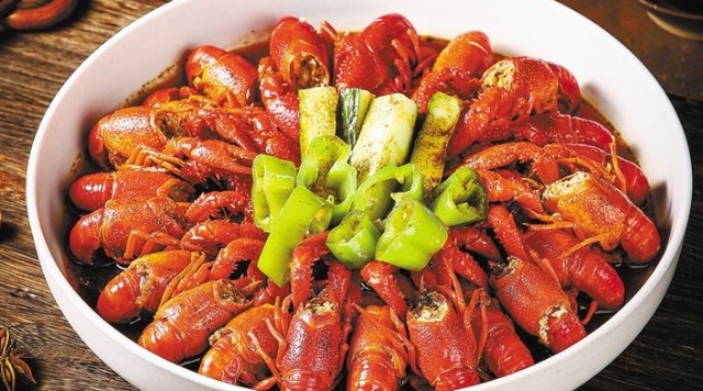招牌香小龍蝦由小龍蝦和一種特殊的配料十三香,并配以辣椒、花椒等材料燒制而成。