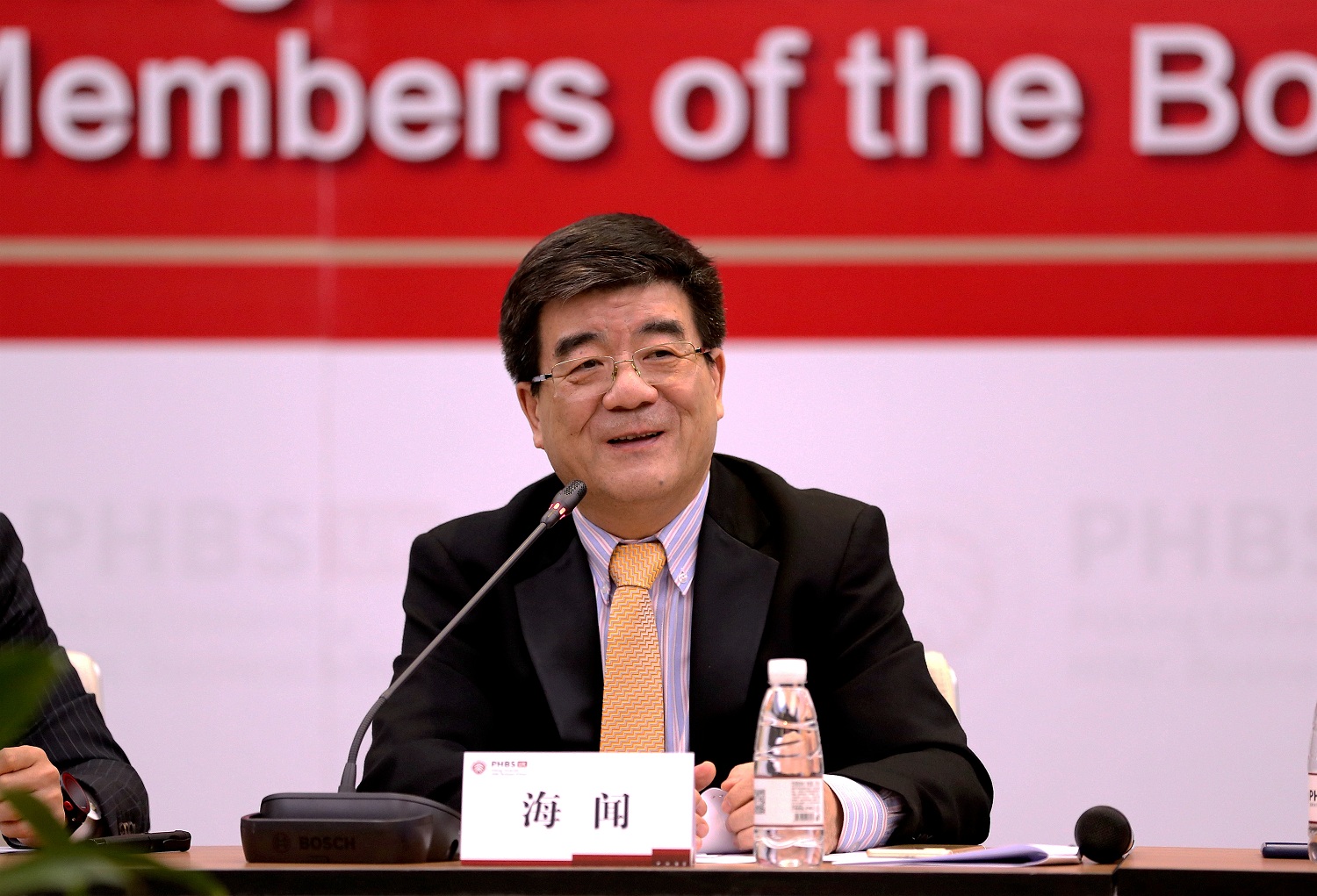 在介紹校董會人員組成和發展基金情況時,海聞院長特別感謝各位創始校董長期以來對學院發展,特別是英國校區創建給予的關注和支持。他強調,英國校區的創建是一件具有歷史意義的事件,因而被很多媒體稱為“中國高等教育發展的一個重要的里程碑。”海聞院長相信,在各位校董的關心支持和全院師生員工的共同努力下,北京大學匯豐商學院英國校區一定能夠成為“英國教育天空中一顆來自中國的明亮之星。”