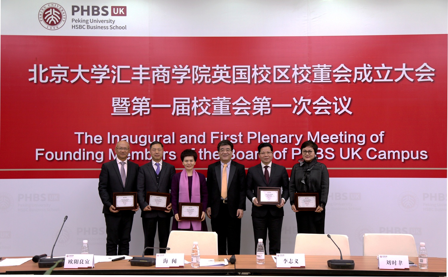 2018年1月13日,北京大學匯豐商學院英國校區校董會成立大會暨第一屆校董會第一次會議在學院509會議室隆重舉行。北京大學校務委員會副主任、匯豐商學院院長海聞,副院長李志義、歐陽良宜,20位創始校董及學院相關部門負責人出席了會議。會議由歐陽良宜副院長主持。