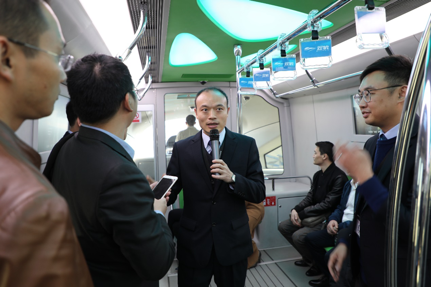 隨后,同學們親身體驗了比亞迪自主研發的跨座式單軌—云軌。云軌是比亞迪為解決城市擁堵問題歷時5年,投資50億傾心打造的跨座式單軌。具有造價低、建造周期短、占地面積小、噪聲低乘坐舒適等特點,采用全鋁輕型和流線型車身設計,搭載鐵電池儲能系統、永磁輪邊直驅電機、能量回饋系統和無人駕駛系統等領先科技,創造市民綠色出行新體驗。云軌自推出以來市場反饋熱烈,全球各大城市簽約動作頻頻,陸續開建落地,前景非常廣闊。