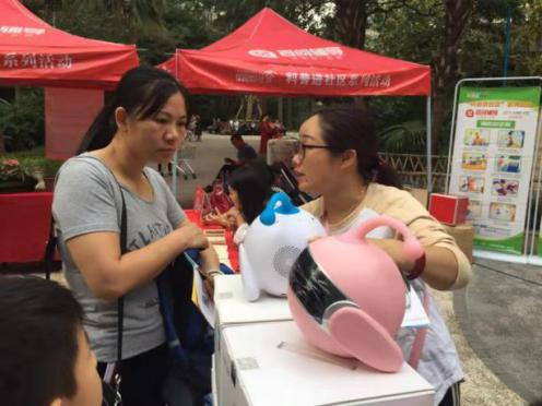 深圳諾必達節能環保有限公司的智能機器人受到小市民的青睞。小小機器人伙伴不僅能唱歌背誦,還能查詢及輔助學習,可以成為學生市民的“知識百科庫”,也是家長聯系孩子的橋梁。在活動現場小市民紛紛前來與機器人互動,深刻感受著科技正在改變我們的生活。