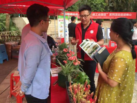 解說員正在向市民科普花卉科學養護知識