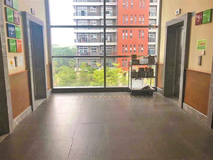 上周五記者來到事發現場,長廊中的餐車均已撤走,但明顯可看出,若擺上餐車,狹窄的長廊必定會對園中幼童產生安全隱患。校方表示,目前已選定學校教學樓電梯前一處空閑區域作為餐車放置區,該區域較為寬闊,且孩子們少在此處上下,相對安全;就餐時間之外,學校也會將餐車撤離教學活動區域。