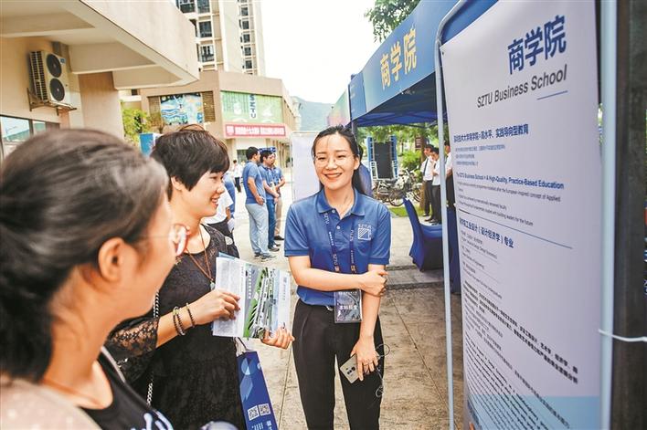 在商學院的招生咨詢展位前,來自德國的教授戈爾達娜·基蘭笑意盈盈地向?qū)W生和家長遞上學院宣傳冊。戈爾達娜·基蘭說,她被深圳這座城市的氣質(zhì)和深技大的辦學模式吸引,今年3月加入學校成為一名全職教授。“在德國,應(yīng)用技術(shù)大學都設(shè)有商學院,很高興今年技術(shù)大學開設(shè)商學院,培養(yǎng)更多優(yōu)秀的創(chuàng)新創(chuàng)業(yè)人才。”
