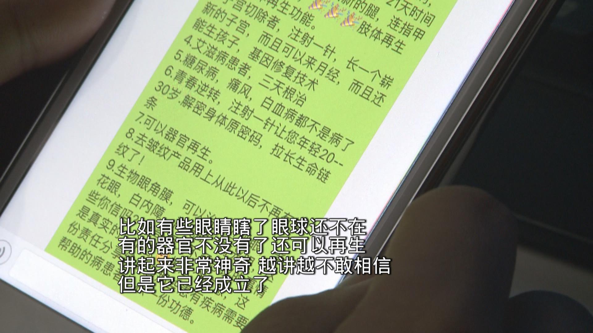 “先機,先機,改變人類命運的生物科技”,這條號稱改變患者命運的短信在一些微信群里流轉,短信內容號稱只要打一針,就能治愈身體上所有的疾病,其中包括癌癥、肢體再生、子宮再生、糖尿病、青春逆轉等,還呼吁將短信轉給有需要的患者,并表示向全國招募合伙人。