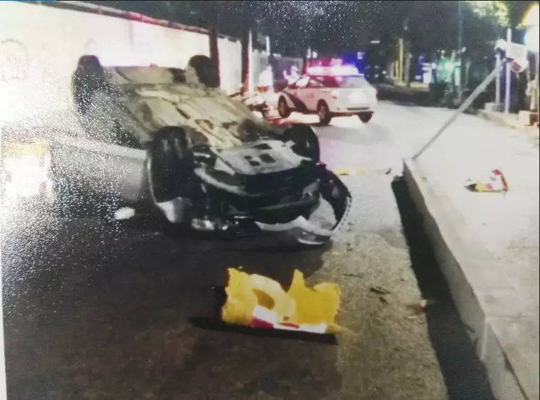 2018年9月22日凌晨4時30分許,深圳交警接報稱在坪山區馬巒街道坪環路心海城路段發生一起小車與路中間隔離水泥墩發生碰撞導致車輛側翻的道路交通事故。