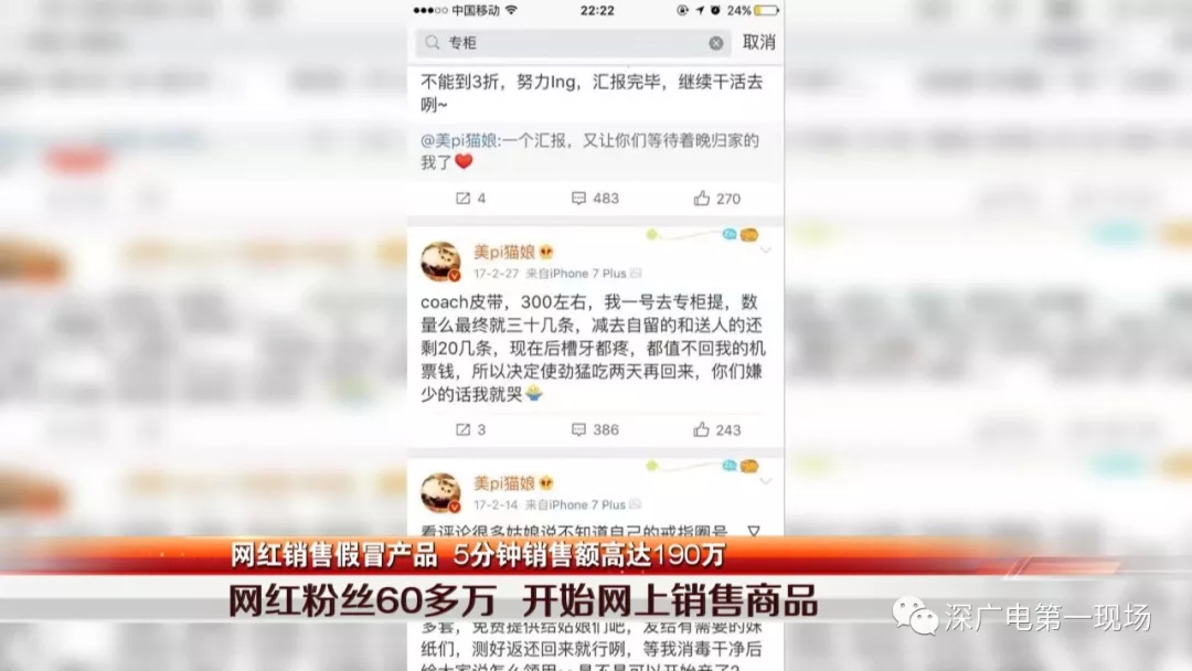 成為網(wǎng)紅大V后,于某通過“網(wǎng)紅經(jīng)濟(jì)”變現(xiàn)。2017年,有人找到她,稱可以搞到一些大牌工廠的尾單、特殊渠道的貨,而于某有渠道,雙方開始合作。