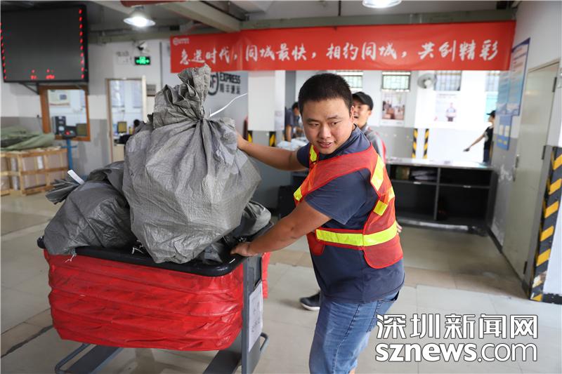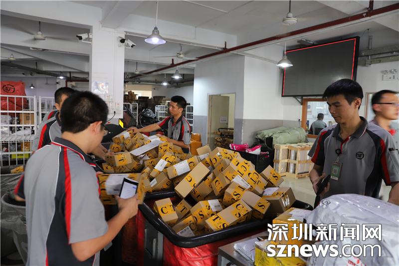 忙碌的田貝營運部內,順豐員工正在搬運包裹