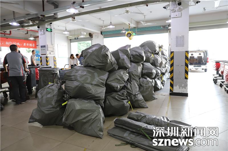 已經分揀好的包裹打包好,等待運送到各收派件網點