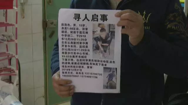 2018年12月20日,市民趙先生13歲的兒子小杰“失聯”了