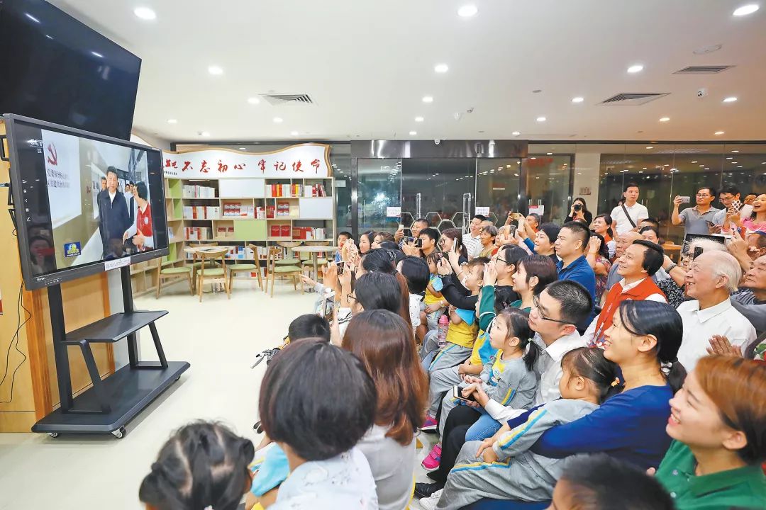 社區群眾在深圳北站黨群服務中心觀看習近平總書記在廣東視察的新聞。