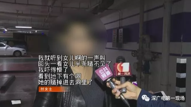 當時停車場燈光昏暗,付女士的女兒剛準備從后排左側的車門上車,就一腳踏進了這個坑里。