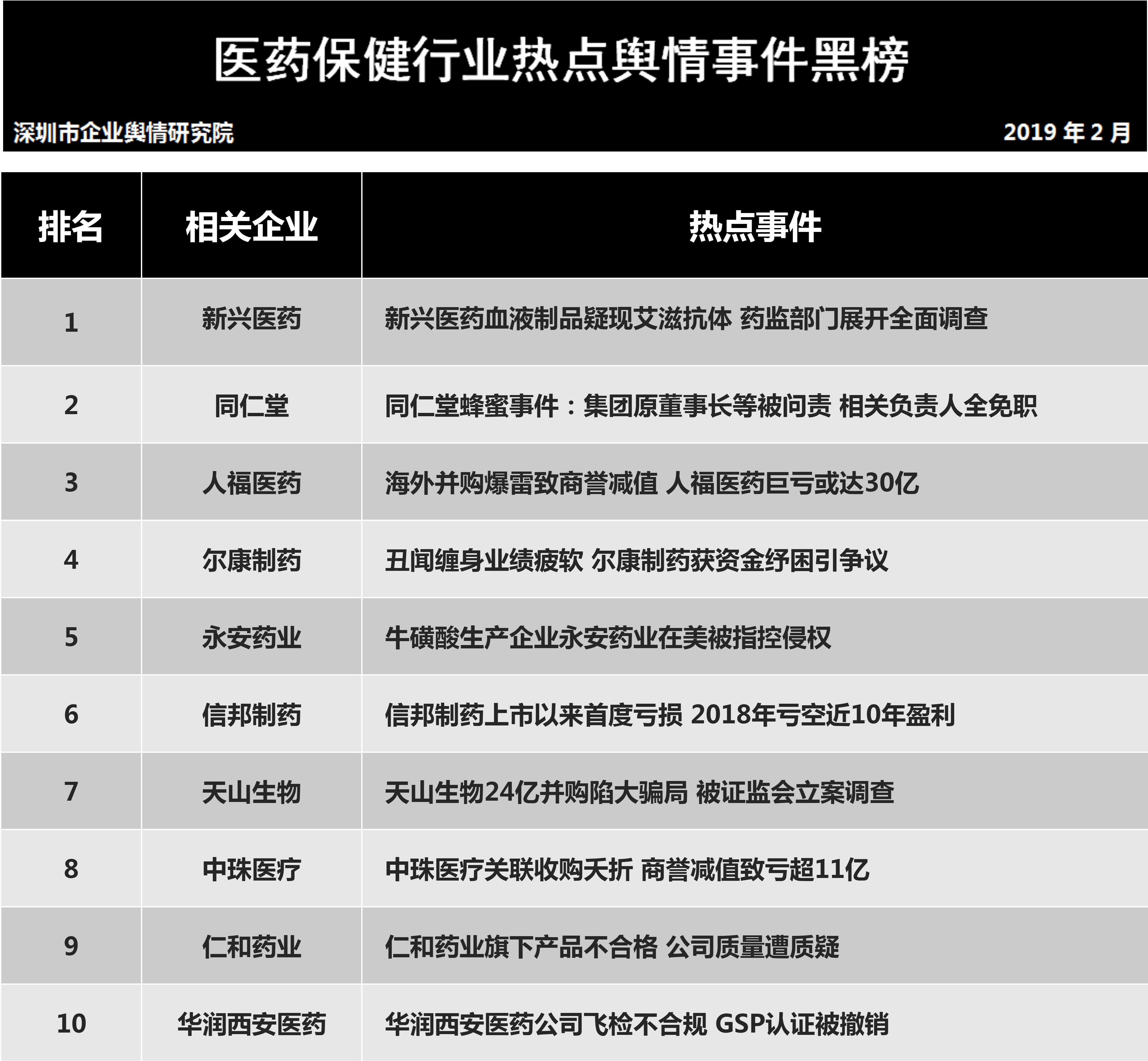 深圳新聞網(wǎng)2019年3月5日訊 (記者田志強 通訊員陳文光)3月5日,深圳企業(yè)輿情研究院發(fā)布第十三批企業(yè)輿情榜單。本次榜單重點聚焦房地產(chǎn)及醫(yī)藥保健兩個行業(yè)。醫(yī)藥保健行業(yè)輿情榜單由醫(yī)療保健行業(yè)熱點輿情事件排行榜(紅、黑榜)及醫(yī)藥保健行業(yè)企業(yè)公眾形象排行榜組成。