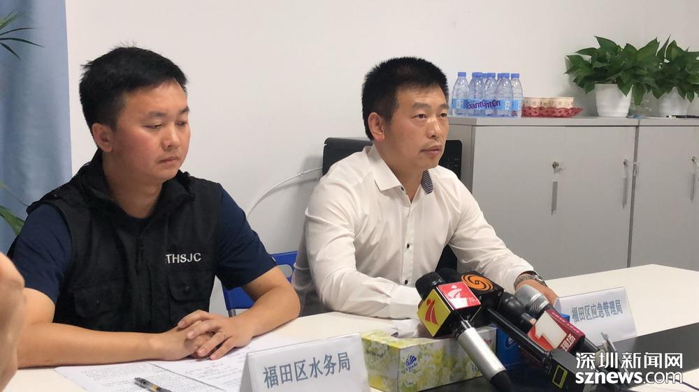 4月12日上午10時,福田區(qū)在鳳塘河口水質(zhì)凈化工程的現(xiàn)場召開新聞發(fā)布會。福田區(qū)應急管理局副局長劉漢元、福田區(qū)水務局副局長尹學康通報搜救情況。