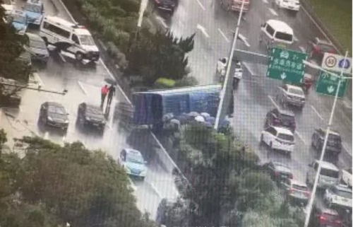 剛剛,濱海大道沙河西路 一大巴車隔 ...