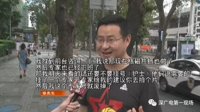 徐先生說,到了醫院專家只是簡單看了幾眼,就讓他們去做核磁共振。徐先生說,醫生提出拍核磁共振的建議,他們是欣然接受的。萬萬沒想到的是,做核磁共振的病人大排長龍,排到徐先生妻子的時候已經是晚上8點半。拍完了核磁共振,專家醫生早已經下了班。