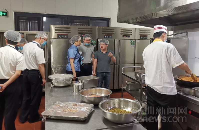 聯合檢查組進入食堂后廚進行檢查(深圳市人民檢察院供圖)