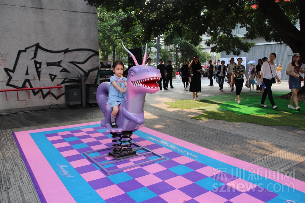 獨立插畫師羅曉駿擅長塑造他對情感、對夢想的思考,曾于深圳 ONO Infection、OCTCC藝術空間、香港、北京、日本等地多次舉辦個展和群展。此次作品《夢玩游樂場》希望給園區內的行人帶來童話般的浪漫感受。