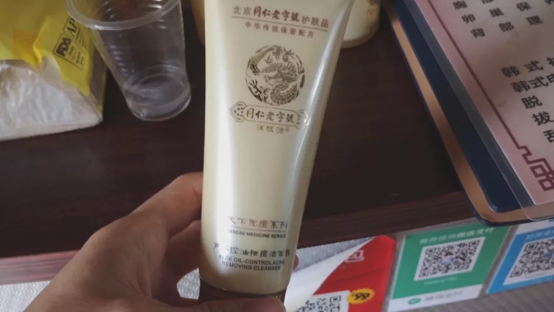 還有少數養生美容館,出售一款印有“北京同仁堂”字樣商標的舒緩膏,委托方是北京同仁堂化妝品有限公司,被委托方為廣州蜜妝生物科技有限公司,而生產許可證完全是粵妝號,而不是藥號。