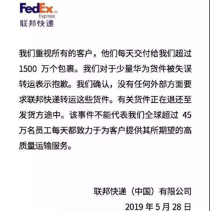 聯邦快遞承認“失誤”轉運并表示抱歉