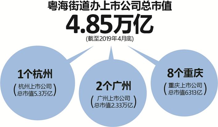 有媒體統計顯示,在粵海街道這個開車10分鐘就能逛一圈的“彈丸之地”,有112家公司屬于粵海街道辦,包括4月底市值超過3萬億元人民幣的騰訊控股,中國恒大、華潤置地、騰訊音樂、邁瑞醫療、中興通訊等5家千億市值公司,以及大族激光、深信服、金蝶國際等近20家百億市值公司。截至到今年4月底,A股、H股和美股上市的深圳市粵海街道辦上市公司有多達112家,總市值達到了4.85萬億元,而杭州市全市的上市公司總市值為5.3萬億元。
