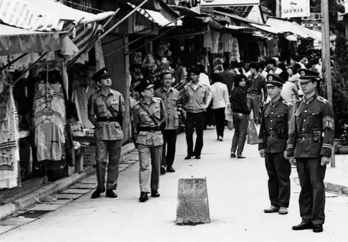 作品《中英街》。1985年,何煌友拍下中英街珍貴而又真實的一幕。