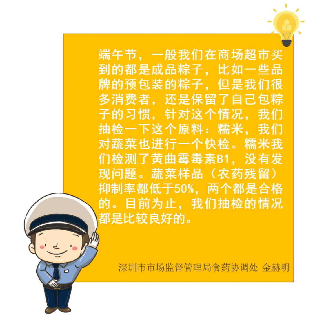 一年一度端午“粽”動員時刻到! 現(xiàn)在是不是想品嘗粽子的美味了? 肉粽肥瘦恰當(dāng)?shù)娜澫?/p> 蛋黃粽蛋黃留油的鮮潤 白粽沾綿糖的甜醇...... 于是總會來一場 甜咸粽黨battle 而有職業(yè)病的食安君只想關(guān)注安不安全 先關(guān)注下本期的【食安周報】 2019年食品安全抽樣檢驗(yàn)情況通報 (第二十一期) 本次共抽檢生產(chǎn)、流通、餐飲環(huán)節(jié)應(yīng)節(jié)食品(粽子)200批次,涉及經(jīng)營主體123家次,共檢測食品指標(biāo)1738項次,全部檢測合格。 全部合格 深圳的小伙伴 看完這個抽檢 吃起粽子來,就更安心啦~ 抽檢現(xiàn)場 針對應(yīng)節(jié)食品粽子 執(zhí)法人員進(jìn)行兩個方面的檢查 戳視頻直擊檢查現(xiàn)場 現(xiàn)場還對制作粽子原料糯米 還有蔬菜進(jìn)行快檢 糯米我們檢測了黃曲霉毒素B1 沒有發(fā)現(xiàn)問題 蔬菜樣品(農(nóng)藥殘留)抑制率都低于50% 兩個都是合格的 可以放心吃 但是你懂得怎么吃嗎? 食安君這就告訴你 吃粽子的正確姿勢? 食用過量粽子而引發(fā)消化不良的情況時常發(fā)生老人、小孩和有胃腸道基礎(chǔ)疾病的人 要格外注意! 粽子好吃但要適可而止 粽子選購秘籍 說起買粽子,食安君又要老生常談了,一定要通過正規(guī)渠道購買哦,不要購買路邊的“三無”粽子。 同時注意查看外包裝的食品標(biāo)簽,如生產(chǎn)日期、保質(zhì)期、生產(chǎn)者名稱和地址、成分或配料表、食品添加劑、食品生產(chǎn)許可證編號等標(biāo)識是否齊全;并仔細(xì)檢查粽子包裝是否完整,真空包裝是否漏氣漲袋,散裝粽子有無變質(zhì)現(xiàn)象等。 健康吃粽小貼士 1.粽子大多屬于高糖、高鹽、高能量食物,不宜過量食用,尤其是糖尿病、三高、肝膽等疾病患者,一定要控制食用量。 2.吃粽子時,最好搭配一些蔬菜、湯羹等,既均衡營養(yǎng),又有助消化;同時,盡量少蘸醬油、砂糖等調(diào)味料,這樣會增加鈉和糖的攝入,不利于健康。 粽子好吃不貪吃 上周,我們向市民發(fā)出了 “你點(diǎn)名,我們來抽檢”的倡議, 我們的食品安全快檢車就來到福田梅林 食品安全快檢車 最后 食安君還是要提醒大家 外出就餐要到證照齊全 環(huán)境衛(wèi)生的餐館 學(xué)會看“笑臉”選餐廳 不選擇無證或衛(wèi)生環(huán)境差的路邊攤 歡迎大家積極參與食品安全監(jiān)督工作 關(guān)注每周食品抽檢信息公布 欄目:食安周報 民以食為先,食以安為天,食品安全是社會各界最為關(guān)注的重點(diǎn)。深圳市市場監(jiān)管局聯(lián)合《第一現(xiàn)場》欄目推出《食安周報》欄目,發(fā)布食品安全權(quán)威信息,為市民帶來第一手食安資訊。 播出時間:每周二晚上7:30 播出平臺:深圳廣電《第一現(xiàn)場》 每周抽檢信息通報 定期公布最新的食品及食用農(nóng)產(chǎn)品抽檢信息。 案件現(xiàn)場 直擊市市場監(jiān)管局執(zhí)法人員現(xiàn)場執(zhí)法,以案件解讀食品安全知識,增強(qiáng)現(xiàn)場感。 食品安全科普 對食品安全相關(guān)知識進(jìn)行科普,回應(yīng)近期食品安全相關(guān)謠言,提示食品安全風(fēng)險。 編輯整理:深圳食事藥聞 轉(zhuǎn)載請注明以上內(nèi)容