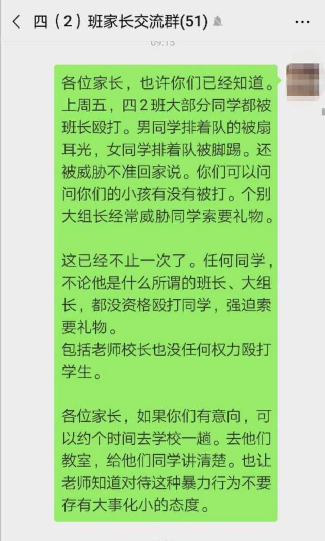 據(jù)女兒反映,當(dāng)天上午課間時(shí)分,班長(zhǎng)(女)將班上的學(xué)生集合在一起,以違反紀(jì)律為由要體罰他們。“三十多名學(xué)生排著隊(duì)被班長(zhǎng)毆打,男生被扇耳光,女生被腳踢。”