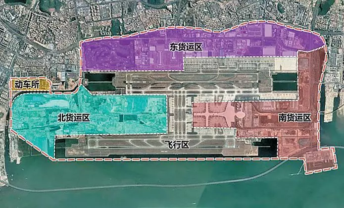 主要包括東貨運區、南貨運區、北貨運區以及機場東動車所等四個功能分區。