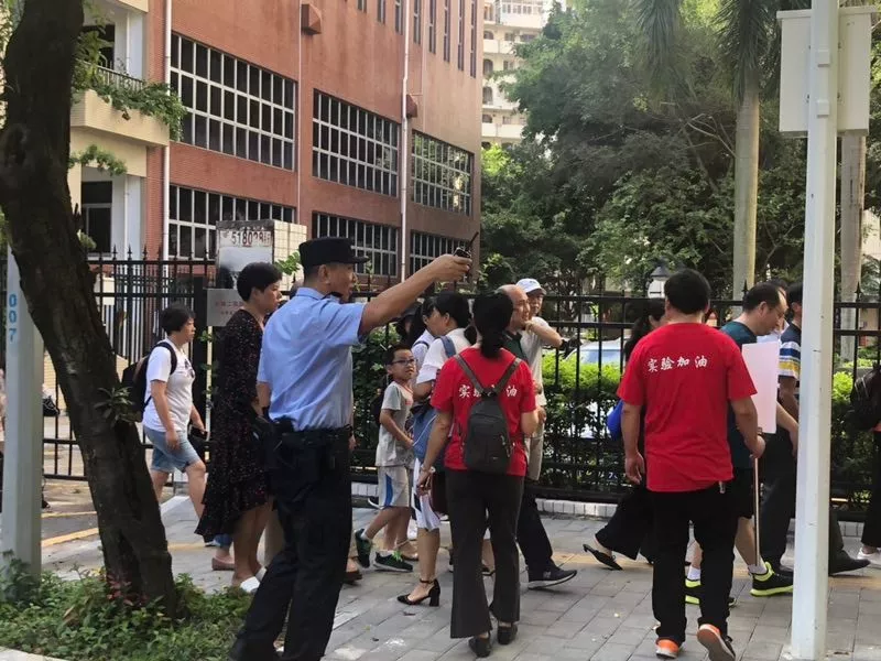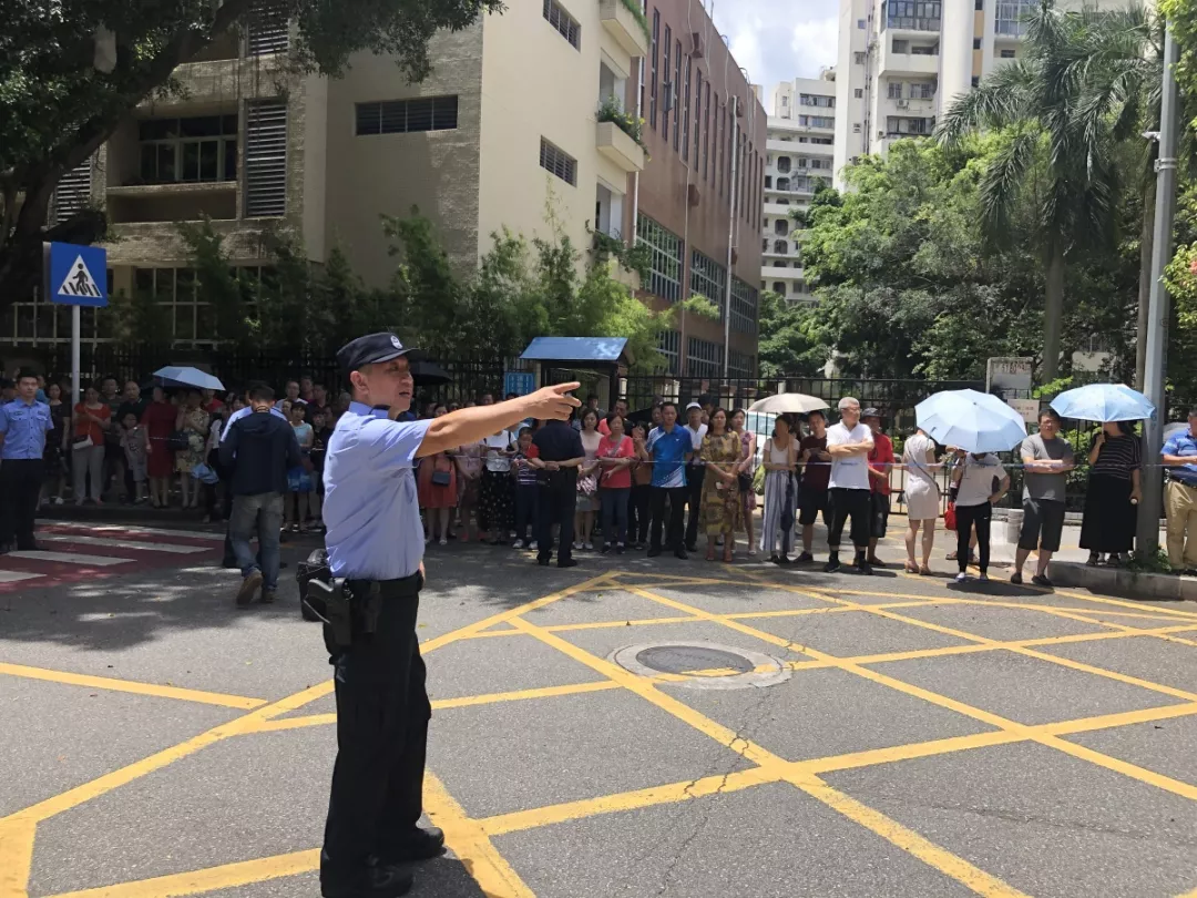 在深圳實驗中學的校門外,正在執勤護考的通心嶺派出所所長林志強正跟送考的家長們“嘮嗑”。“大家都站這么久了,辛苦了!一會考試結束后,咱們來猜一猜第一個走出來的是男生還是女生。”“我猜是男生。”“我猜是女生。”家長們一掃臉上焦急的表情,開始笑著討論起來。
