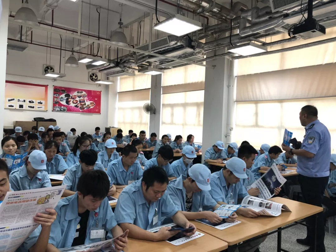 同時,反詐騙教育學院公開課走進梅林派出所轄區成豐電子廠,由反詐騙教育學院專職講師為廠里近500位員工普及反詐知識,并且組織工友們閱讀反詐騙教育學院專刊,提高他們的反詐騙意識。