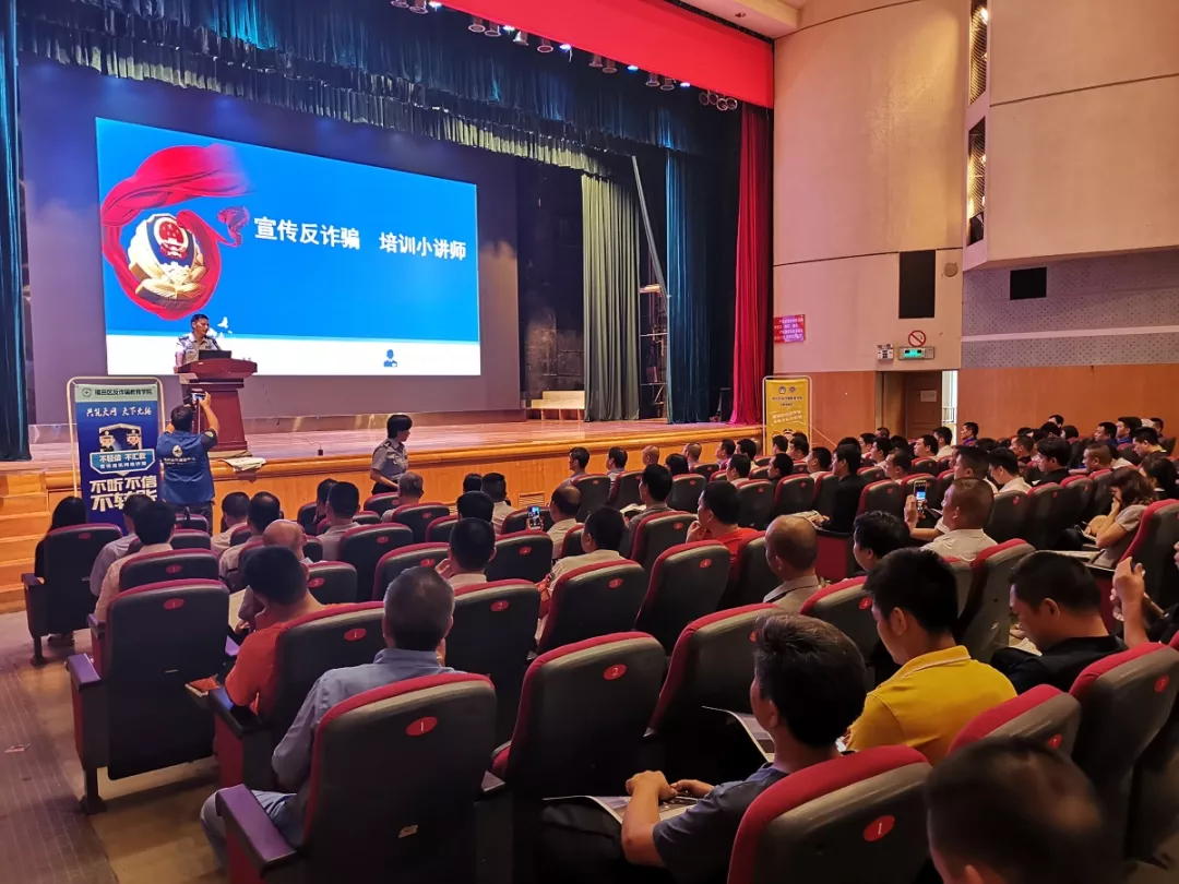 本次公開課,景田派出所轄區邀請了各行各業的反詐代表300余人,到場百余人。反詐專職講師唐順華警官在開場致辭中單刀直入,提出“警力有限民力無限”的觀點,望通過本次課程培養更多的反詐騙講師,并以系統深入的演講給各反詐代表建立基本的反詐騙知識體系。唐警官指出:“只要我們的反詐代表每天花兩小時,給身邊的一百人宣傳反詐騙知識,那么反詐騙宣傳行動也將從量的進步從而得到質的飛躍。”通過本次授課會議,各反詐代表均表示將在日常生活中身體力行地宣傳反詐知識,真正做到反詐人人知曉。