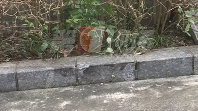 記者再次趕到事發現場,洪湖公園南門斜坡旁的石磚因為車輛的沖擊力都出現了殘缺。