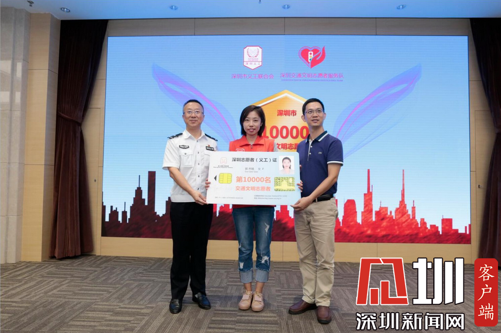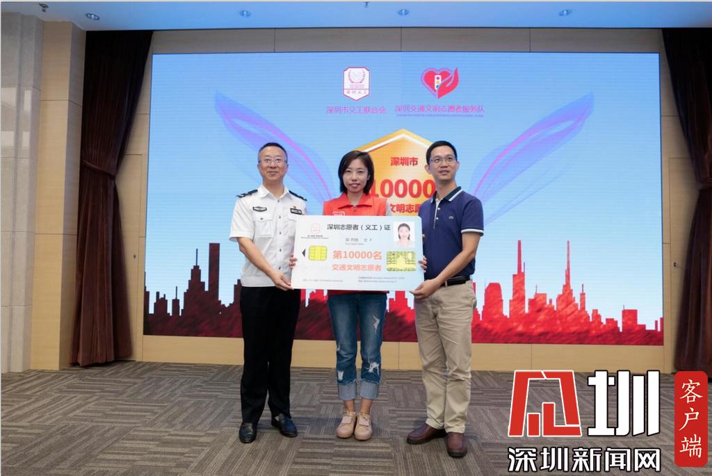 深圳交警為第1萬名交通文明志愿者頒發義工證