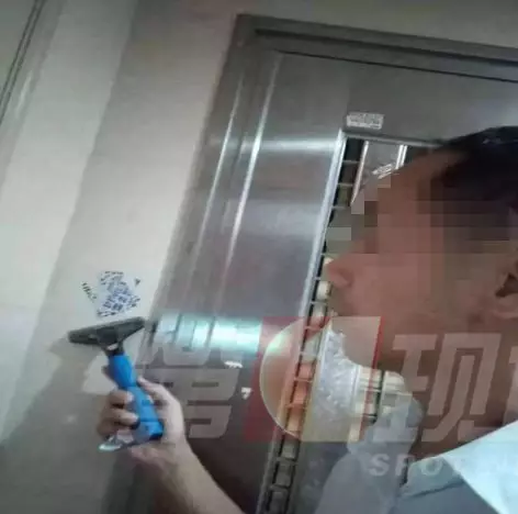 ▲小區物管人員上門清理“牛皮癬”