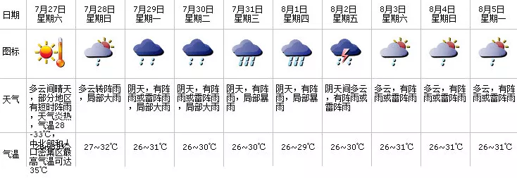 請注意防暑降溫及防范局地短時強降水