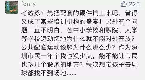 在留言中,多數家長表示,如果確定將游泳納入中考體育必考選項,希望學校體育教學也能進行相關配套。而小編了解到解到,目前深圳小學、初中學校開設游泳課最大的難點在于場地。