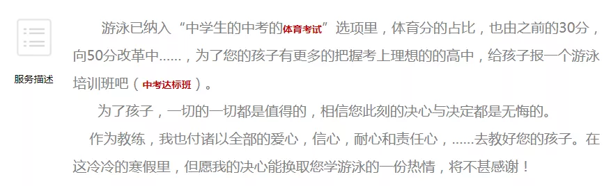 小編了解到,目前的游泳報考生大多是從小在校外自費訓練,多年來需要花費高額學費及投入大量精力。盡管新的中考體育考試辦法尚未確定,但不少商業培訓機構已嗅到商機,迅速做出了反應。深圳幾家大型培訓機構網站上,針對不同年級適用的中考項目一一列出,最新的《征求意見稿》也被貼在了2022年中考部分,并強調對擬新增的項目同樣提供相關服務。小編網上隨手一搜,到處都是游泳培訓班的廣告: