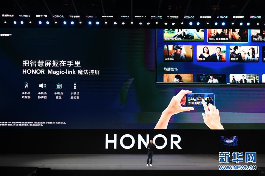 8月10日,華為榮耀總裁趙明在發布會上介紹榮耀智慧屏。新華社記者梁旭攝
