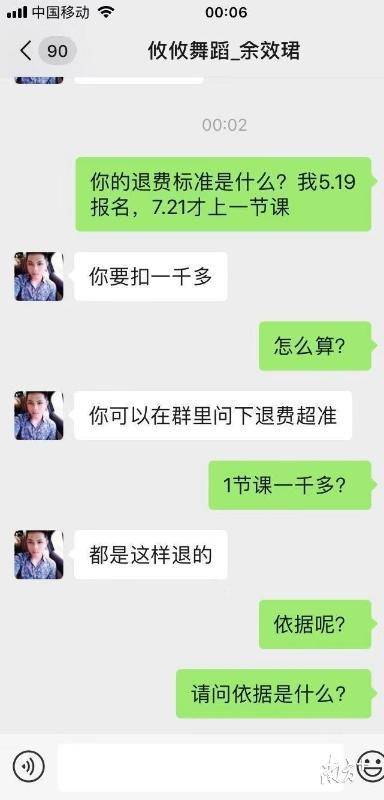 7月31日,學員們再次聯系上余效珺,余效珺又答應第二天退款。“結果第二天學員在舞蹈室等到晚上,老板也沒出現。”劉女士說。8月1日,校區所屬的綜合治理辦公室主持調解,與學員代表商量退費問題,“期間多次打電話催促老板過來,老板都沒有去現場。”