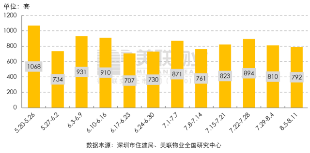 8月5日—8月11日一周內(nèi),全市共簽約成交一手住宅792套/7.3萬㎡,環(huán)比分別下降2.2%和4.9%。成交套數(shù)連續(xù)兩周小幅減少,上周成交套數(shù)降至800套以內(nèi),成為四周來的成交新低水平。