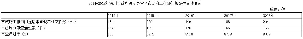 2014-2018年深圳市政府法制辦審查市政府工作部門規范性文件情況