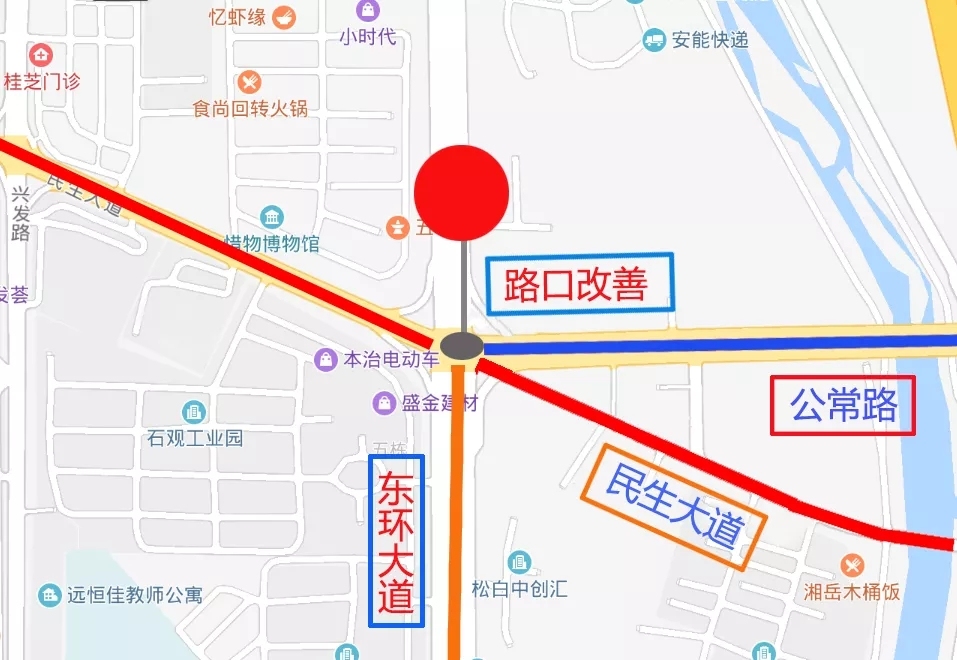 ▼改造前:東環大道、公常路皆為光明區主干道,車流量大,但車道狹窄,路口擁堵,存在極大的安全隱患。此外,該路口人車混行,非機動車逆行現象嚴重,中間岔口僅用石墩圍擋,安全隱患突出。