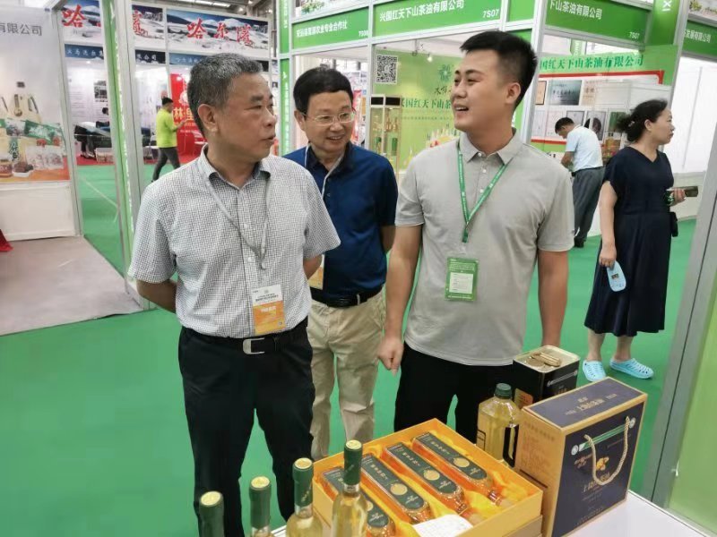 展銷會期間,市委常委、政法委書記陳榮高,市農業農村局黨組成員、副局長呂文生一行特意走訪了參加本次展會的多家企業。在江西油脂有限公司的展區,陳書記詳細了銷售人員紅花山茶油銷售情況,當得知賣出不少時滿意得點頭稱贊,并勉勵銷售人員要以此為契機,讓更多的上饒優質農產品走進粵港澳大灣區,走向全世界。