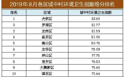 原標題:8月份深圳市環境衛生指數測評成績發布