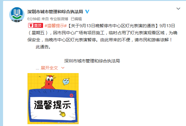 9月13日晚,也是就是中秋節當晚,中心區燈光表演暫停