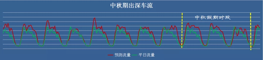 假期第一天上午8時車流開始增大,11時左右各高速離深車流量將會達到頂峰,到下午16時一直處于高位運行狀態,較平日增加30%左右。尤其是博深高速和深汕高速,車流量預計較平日將增加80%至100%。